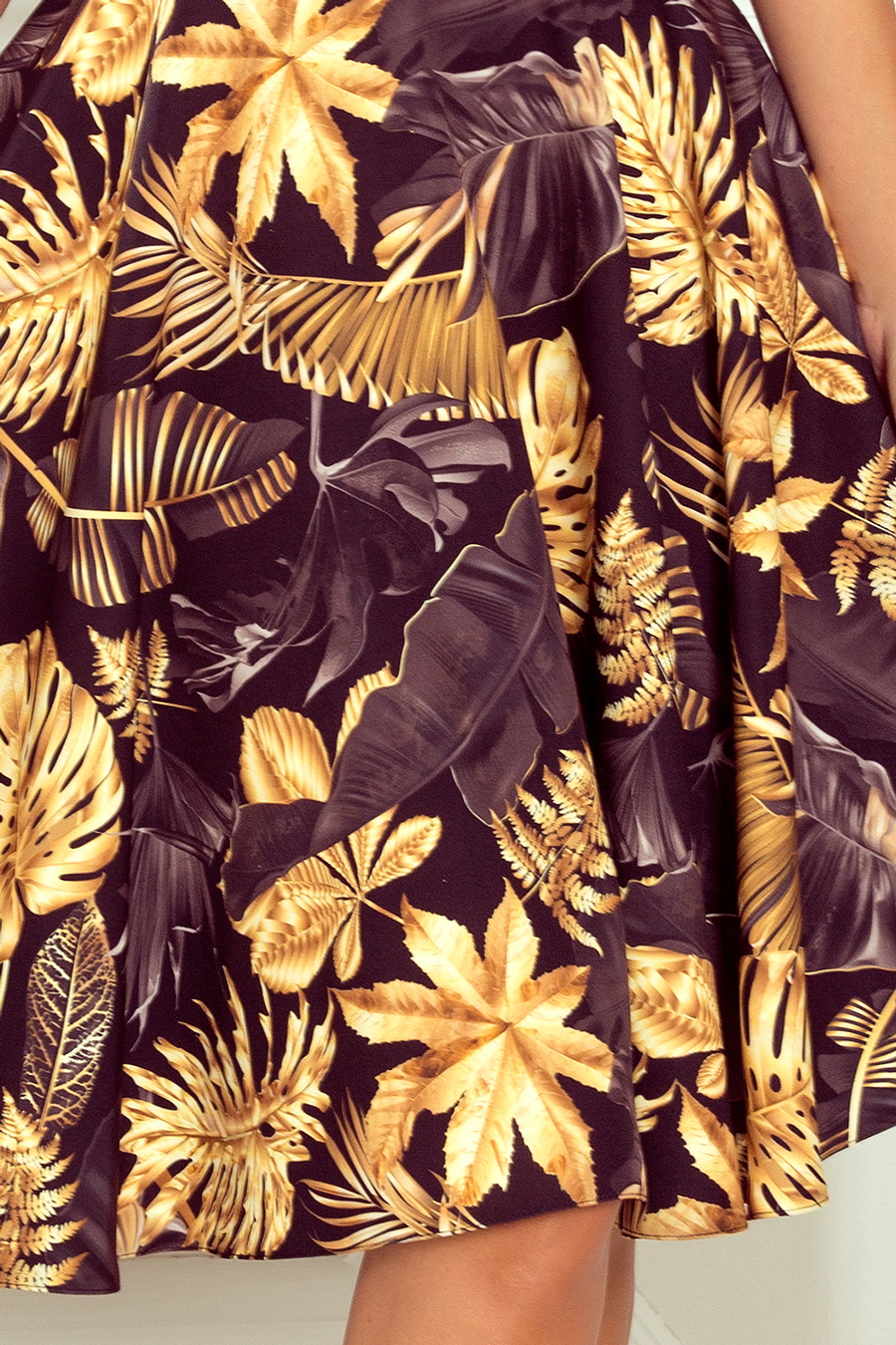 Suknelė su iškirpte – juoda su auksiniais lapais