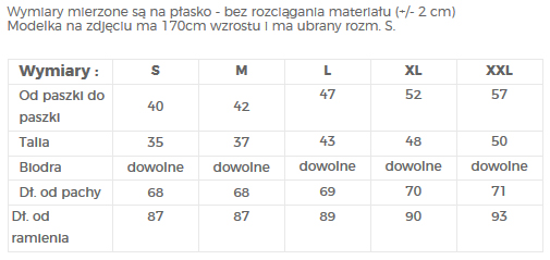 Išmatavimai matuoti plokščiai – be audinio tempimo (+/- 2 cm)
