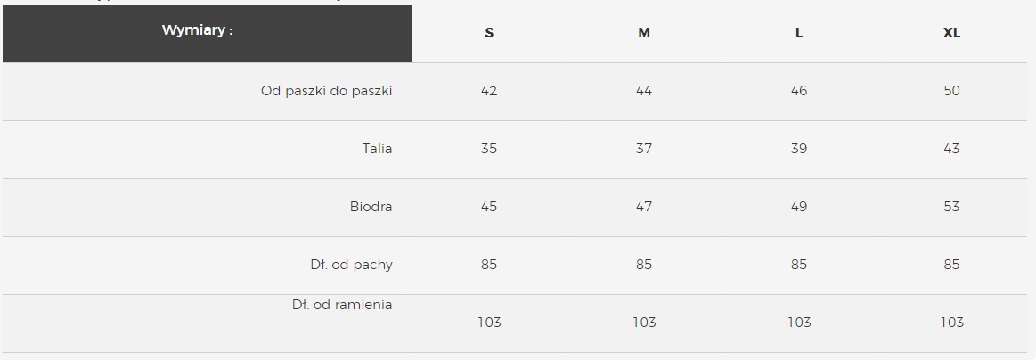 | Nuo liemens iki juosmens | 42 | 44 | 46 | 50 | 52 |