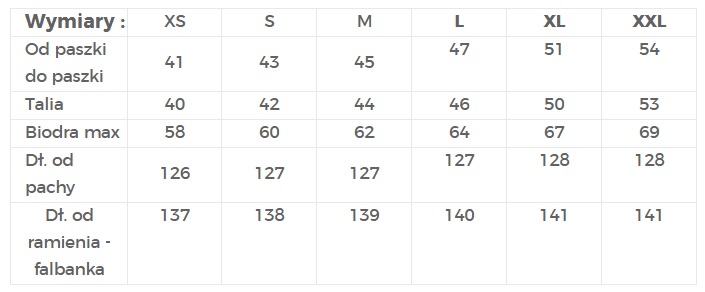 | Talia | 40 | 42 | 44 | 46 | 50 | 53 |