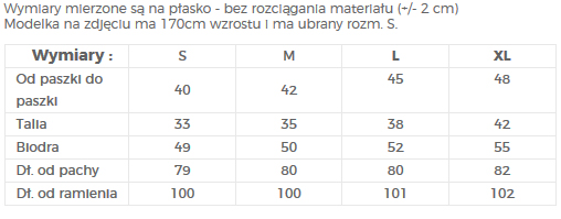 Nuotraukoje pavaizduotas modelis yra 170 cm ūgio ir dėvi S dydį.