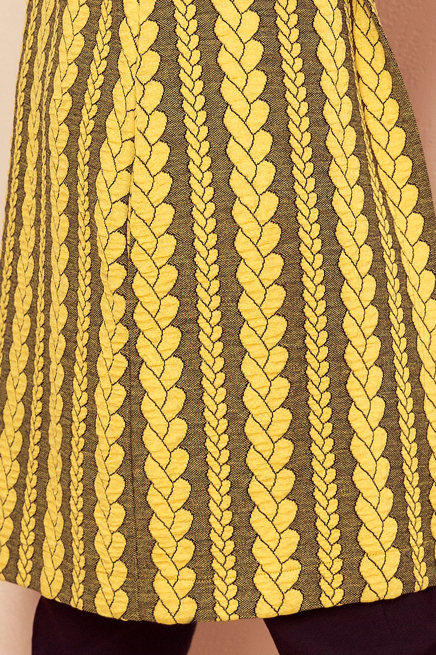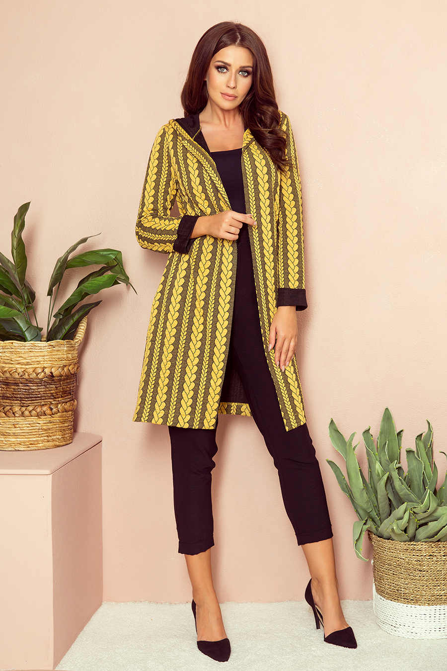 Ilgas apsiaustas su gobtuvu ir kišenėmis, pasiūtas iš žakardinio audinio – medaus pynimo. Prekės ženklas numoco. Lenkiškas gaminys.
