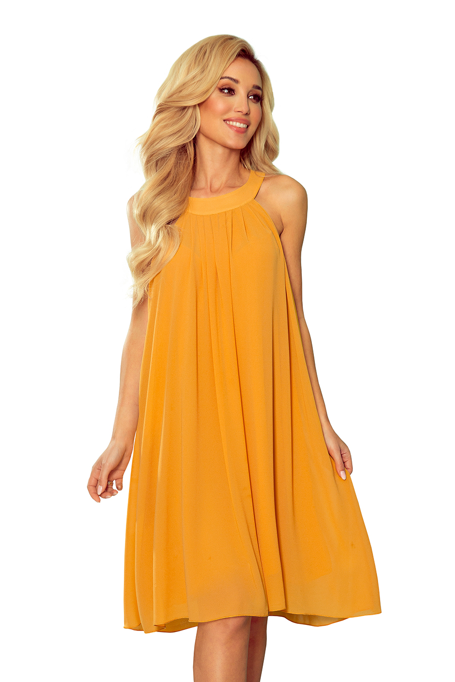 Alizee – šifoninė suknelė su diržu ir kaklaraiščiu nugaroje. Spalva: medaus. Pagaminta “numoco”. Pagaminta Lenkijoje.